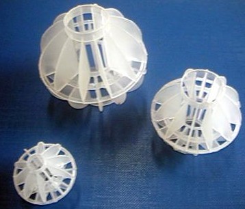 多面空心球的中部沿整個周長有一道加固環,在環的上下各有十二片球瓣。上下球瓣互相交錯沿中間軸呈放射形布置。我廠在有關生產工程塑料的單位幫助下,總結經驗,證實該產品具有如下優點:由于表面積大;傳質效率高,產品空面大,且重量輕、強度大、安裝方便、歡迎各有關部門推廣使用。特點: 氣速高,葉片多,阻力?。槐缺砻娣e大,可充分解決氣液交換;具有阻力小操作彈性大重量輕、強度高、自由空間、耐高溫<120度、耐腐蝕、表面親水性能好、風阻小、電耗少、比表面積大等特點。